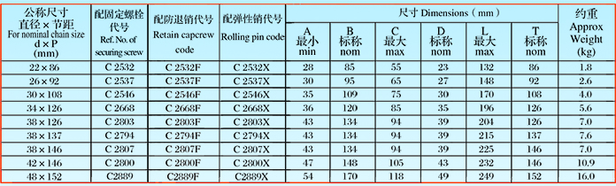 “链锁”式接链环是专门为连接“标准”型圆环链和“紧凑”链而设计。其外形大小符合DIN22259 Part2 1983标准的要求,在制造过程中选择了富含Cr、Ni、Mo、合金元素的高合金钢和多重热处理工艺,以确保“链锁”式接链环(只可安装于水平使用)与配套链轮的“”配合,安全运行。固定螺钉经过防腐处理,利于拆除。链锁式连接环中间块固定有三种形式,用户可根据安装习惯、工况自行选择。