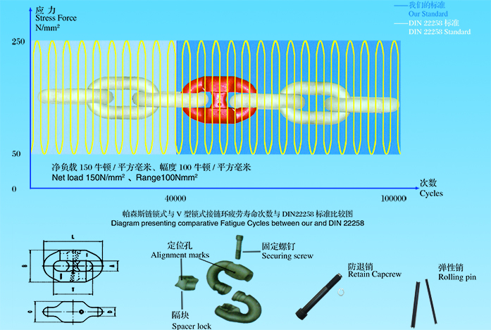 帕森斯链锁式接链环与DIN22258标准机械性能比较图