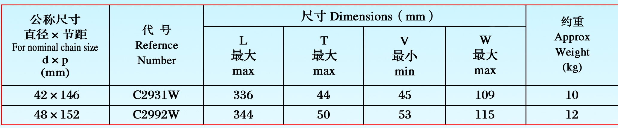 这种接链环只可垂直使用,其外形大小符合DIN22258 Part3 标准要求,并经精心设计,确保与配套链轮的配合。