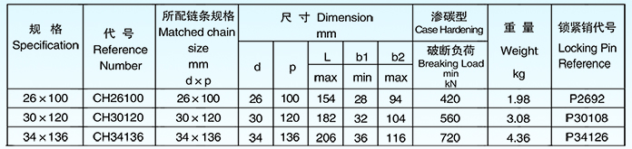 渗碳弧齿型接链环垂直安装使用时,一定要注意装配方向,保证上方箭头与传动方向一致。
