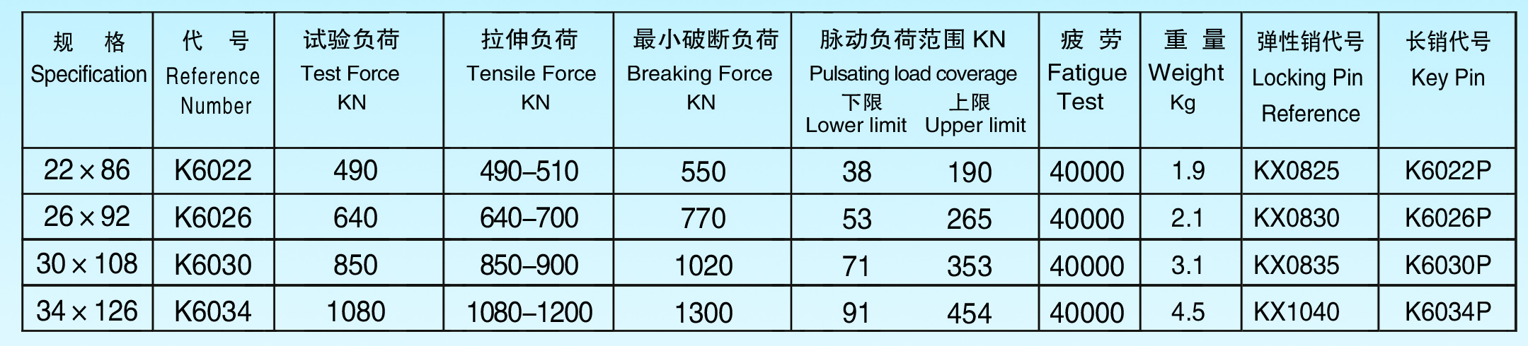 疲劳试验最小40000次;平均应力150N/mm2;振幅±100N/mm2 ;KV冲击试验最小55J(典型的70J)